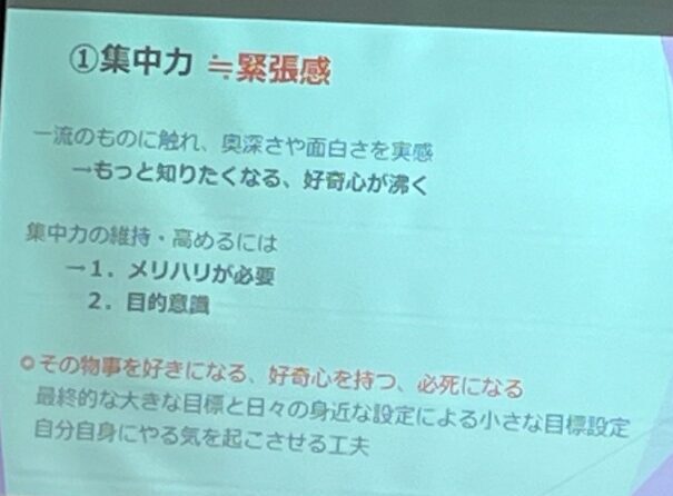 ・一流のものに触れ、奥深さや面白さを実感する。もっと知りたくなる。好奇心がわく(良い循環)。