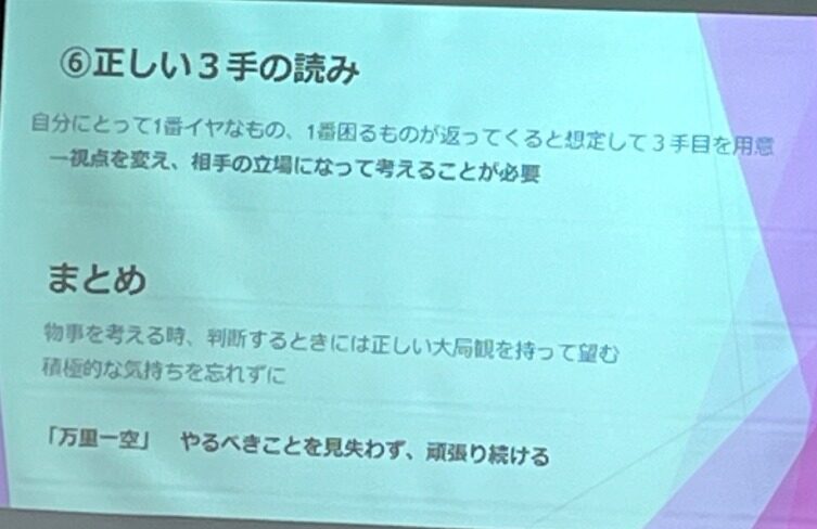 ・自分に都合の悪い相手の3手を考える。相手の立場に立って考える。