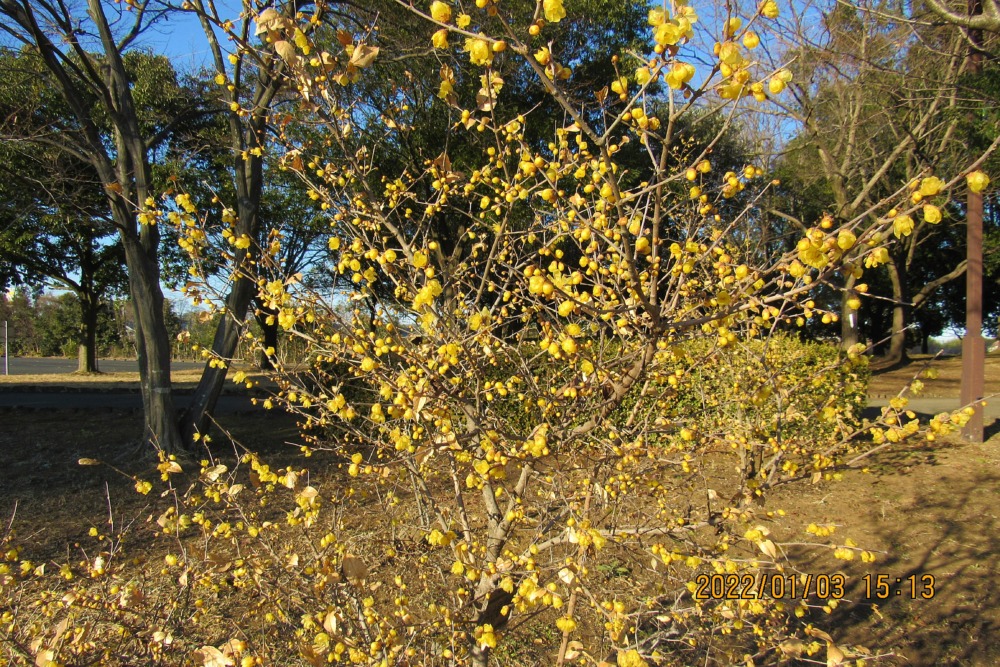 2022.1.3午後 少し暖かなのでロウバイの咲き具合を見に「古代蓮の里」にある ロウバイの林へジジチャリで行ってきました。
