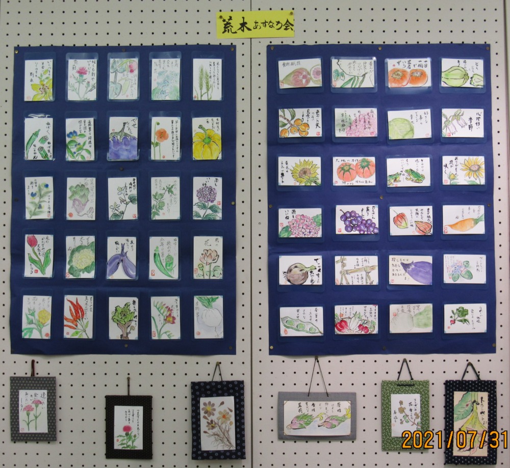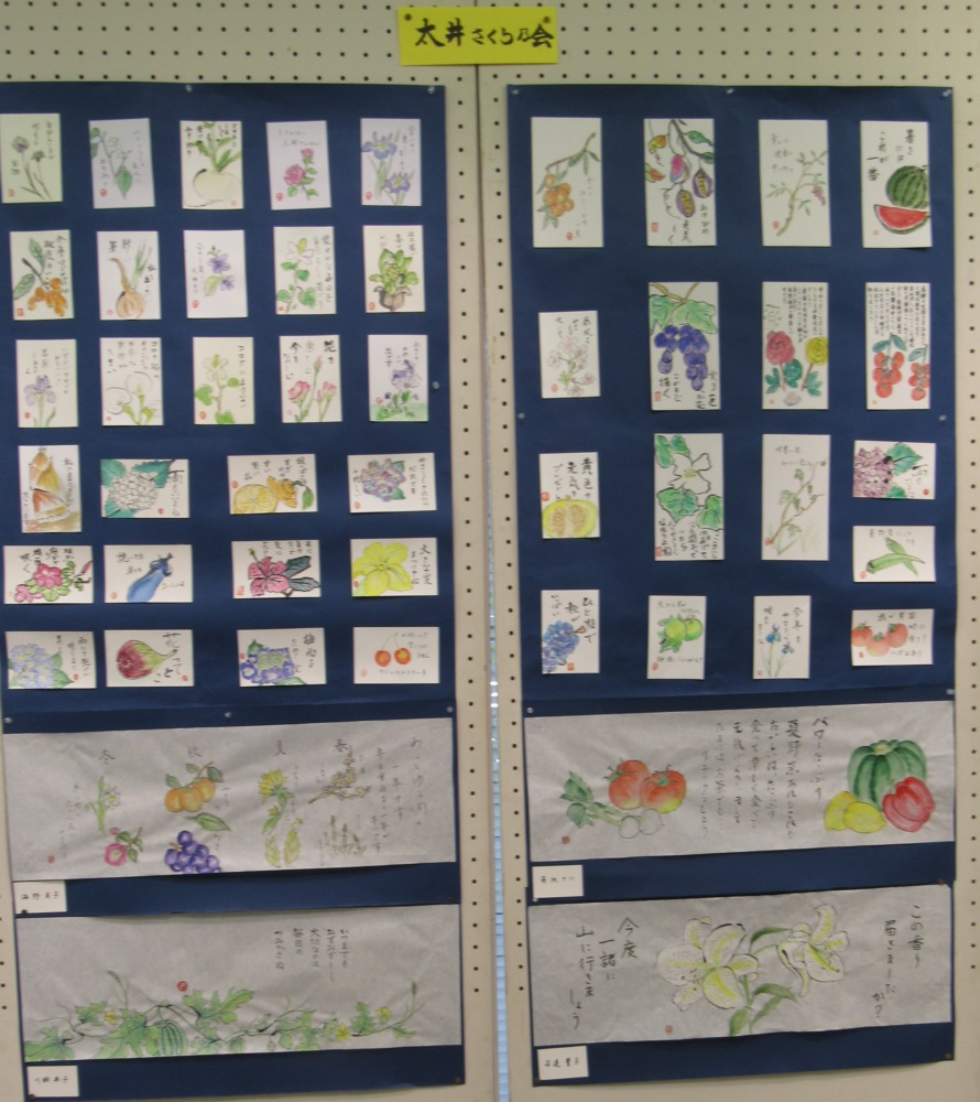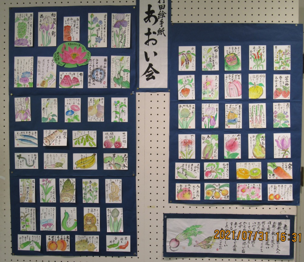 2021年8月6日 / 最終更新日時 : 2021年10月21日 dousoukaiobata 絵手紙作品展に行ってきました 2021.7.31 行田絵手紙あおい会と市内絵手紙クラブの合同作品展が、みずしろギャラリーでありました。(写真をクリックすると拡大されます) 行田絵手紙あおい会の作品 荒木 あすなろ会の作品 須加 絵手紙クラブ利根の作品 太井 さくら会の作品 長野 悠々の会の作品 桜ヶ丘絵手紙クラブの作品 沢山の夏野菜の絵を見て 涼しさを感じると共に今一度食欲がわきました。 役員の皆様 猛暑とコロナで困難な中、出展準備お疲れさまでした。 7期生 尾畑(記)