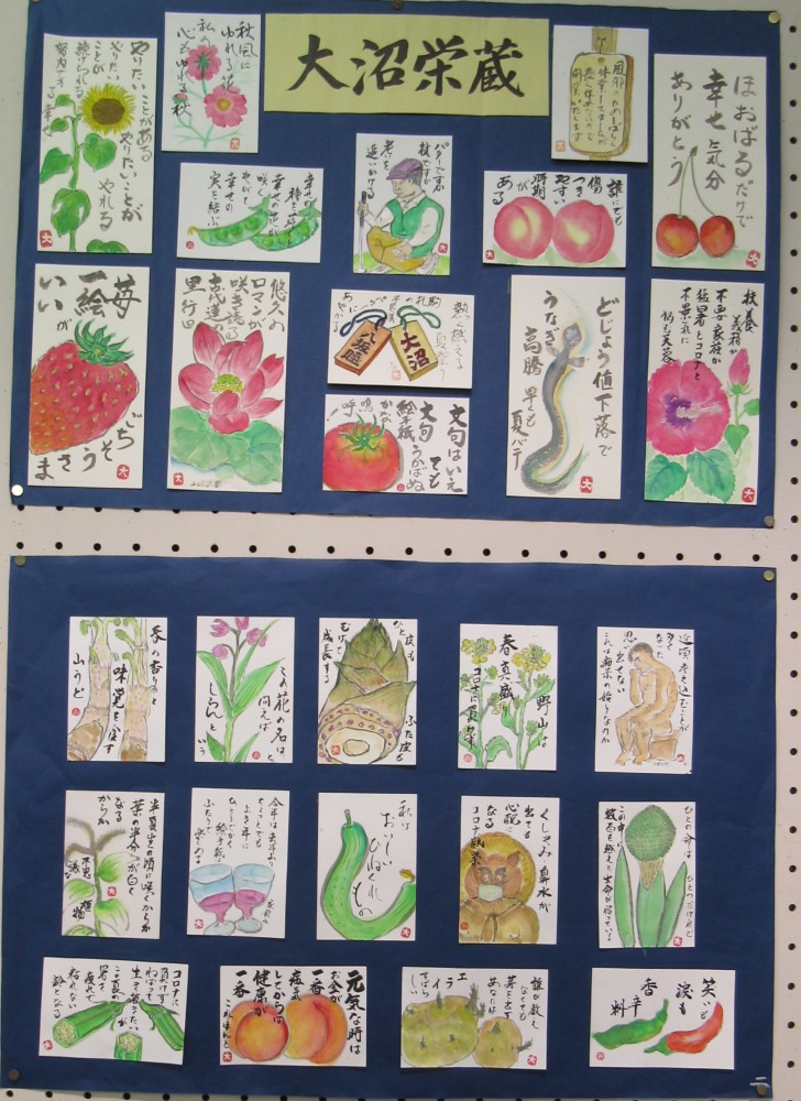 2022.7.23~25 「行田絵手紙あおい会」と「公民館絵手紙クラブ」の合同展がみずしろギャラリーで開催されました。