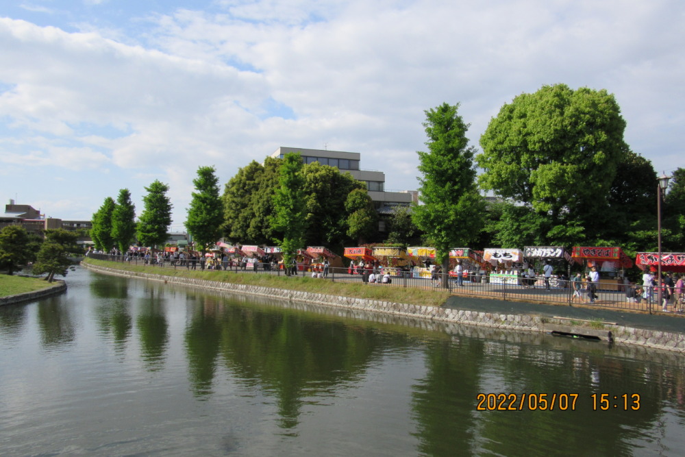 公園通りに出ると、屋台出店が多く並んでいました。(旧忍信用組合店舗付近)