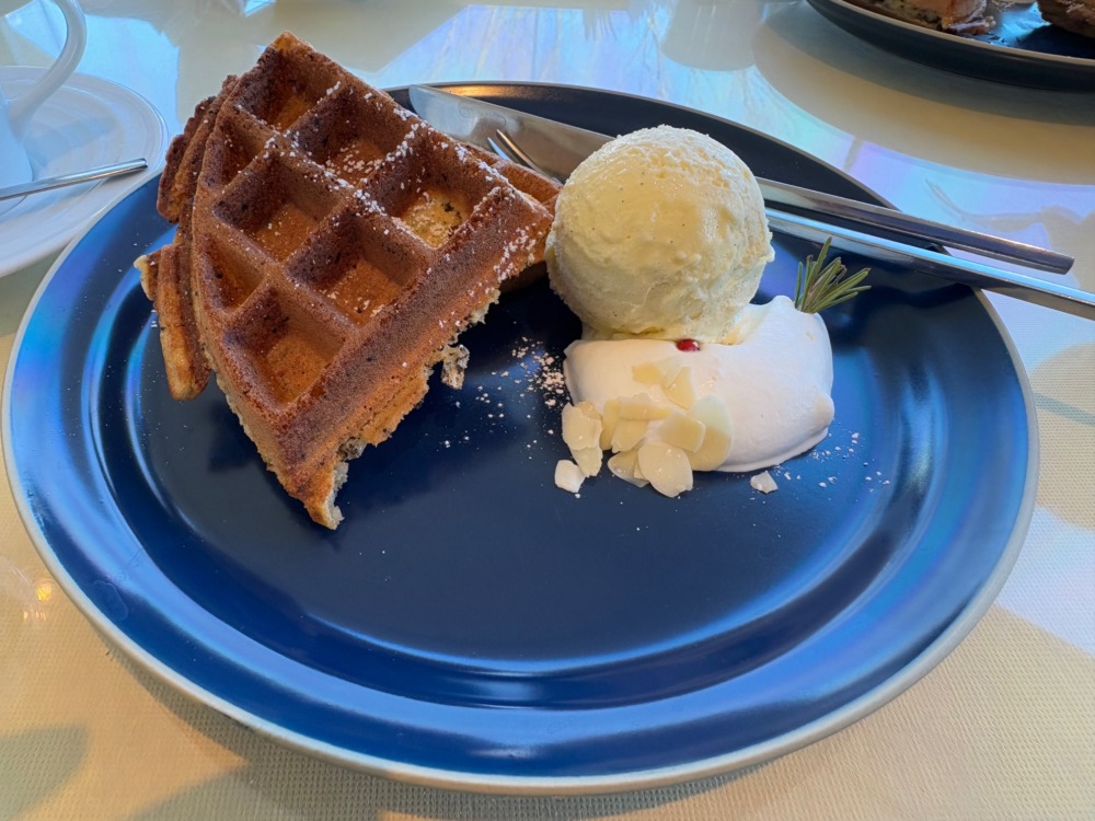 多々良沼を右に見て進むと彫刻の小道に入った。群馬県立館林美術館のレストランエミールで昼下がりのコーヒーをプレーンワッフルを添えていただく。