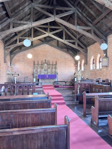 近くの熊谷聖パウロ教会へ礼拝、室内散策。