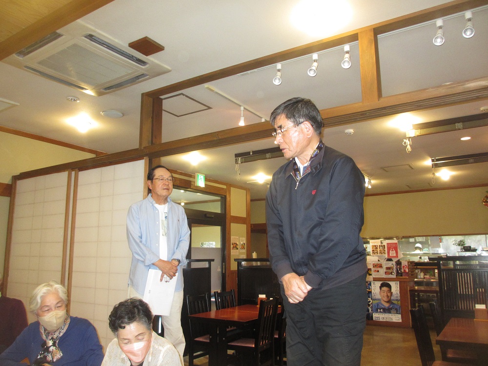 令和5年5月15日(月)に開催を予定していた第4回市民大学同窓会パークゴルフ大会は、雨天中止、6月5日(月)に延期となりました。パークゴルフ大会は、プレーを通じて会員相互の親睦を図るためのイベントです。雨でプレーがダメなら雨でも可能な食事会で!!メンバー全員が一堂に会して食事をしながら親睦を深めようという事で昼食会の開催となりました。 開催日時は、5月15日(月)の午後1時00分から午後3時00分まで、場所は、熊谷市佐谷田地内「采帆久亭」、参加者は21名でした。昼食会には、大会参加予定の同窓会員及び市民大学在学生はもちろんですが、今回は特別に、市民大学から今村理事長が公私ともに大変お忙しいところ、ご出席くださいました。理事長、大変ありがとうございました。これを機に同窓会と市民大学の交流が更に深まるものと確信しております。 昼食会では、参加者全員が自己紹介とプラス一言のお話をして頂きました。皆さんのお話の中でお互いに新たな発見もあり、そして楽しく語り合っているうち午後3時、お開きの時間となってしまいました。大変有意義な食事会でした。
